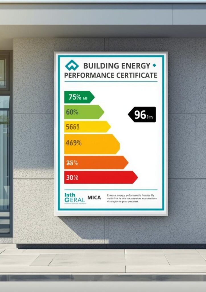 - Dokument, který hodnotí energetickou efektivitu budovy – jak je náročné ji vytopis, chladit nebo ohřát uvnitř vodu. Je to povinný údaj při prodeji nebo pronájmu nemovitosti. Obsahuje klasifikaci od A (velmi úsporná) po G (velmi neúsporná).