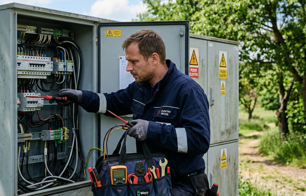 Kontroluje, jestli je elektroinstalace bezpečná a odpovídá normám.